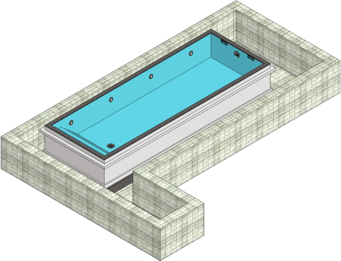 Подходит для частного бассейна с большим количеством закладных деталей, с разными высотными отметками, ступенями, сидениями, лежаками и т.п.